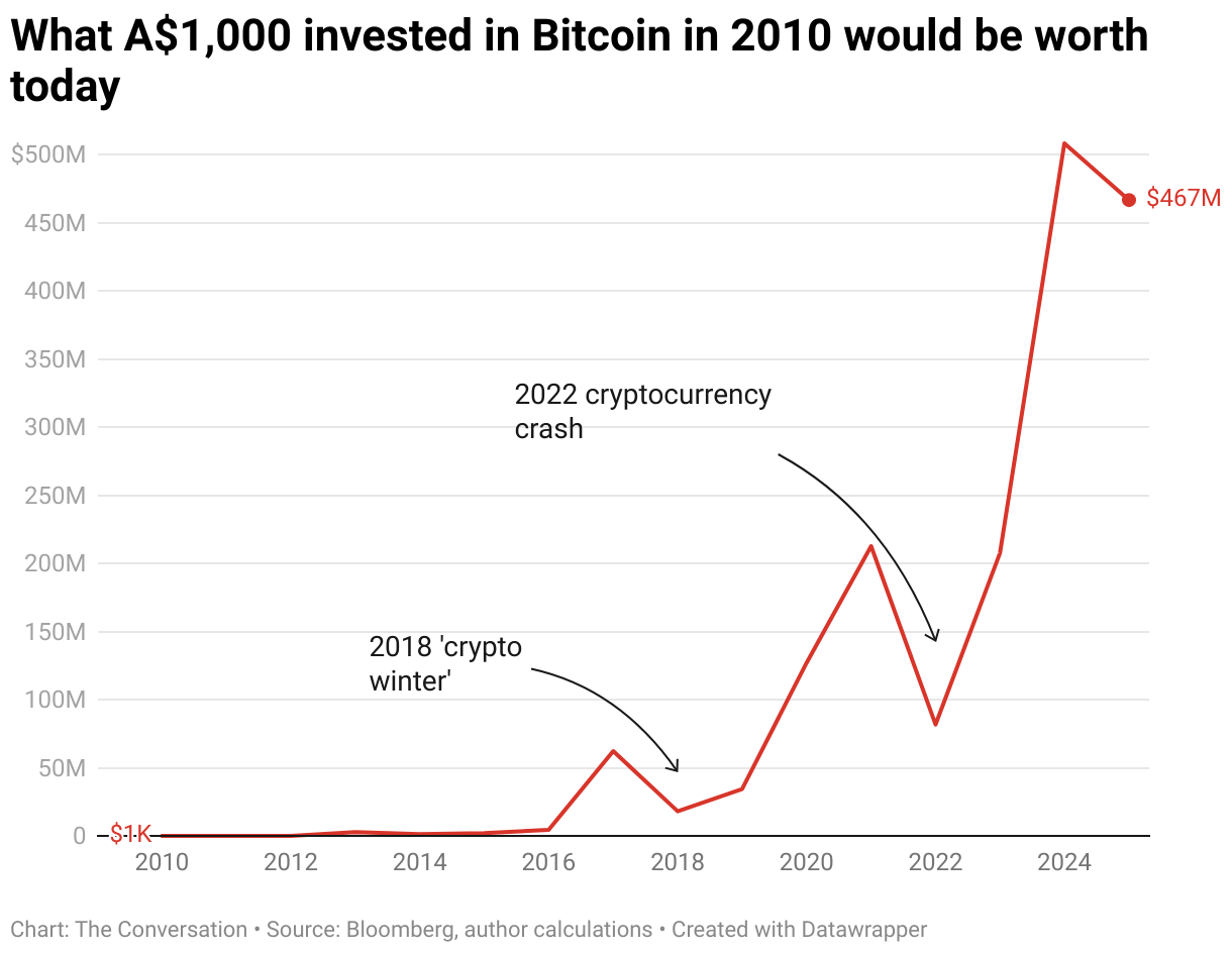 What A$1,000 invested in Bitcoin in 2010 would be worth today
