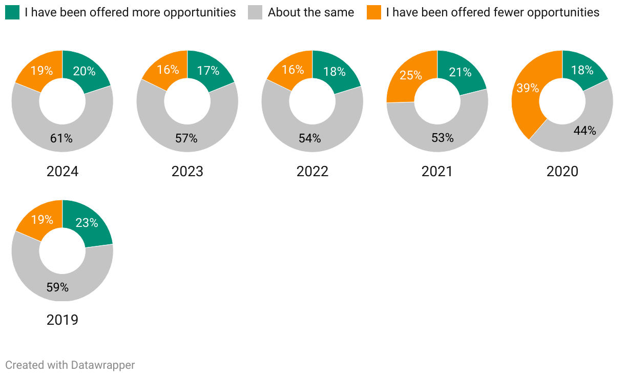 How do you feel your opportunities for training and development have changed over the past 12 months?