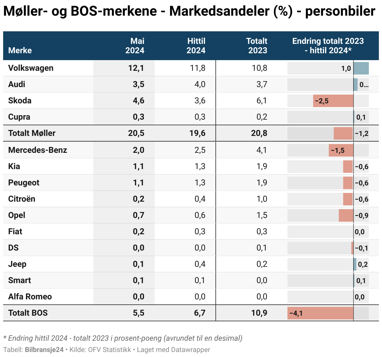 Møller- og BOS-merkene - Markedsandeler (%) - personbiler
