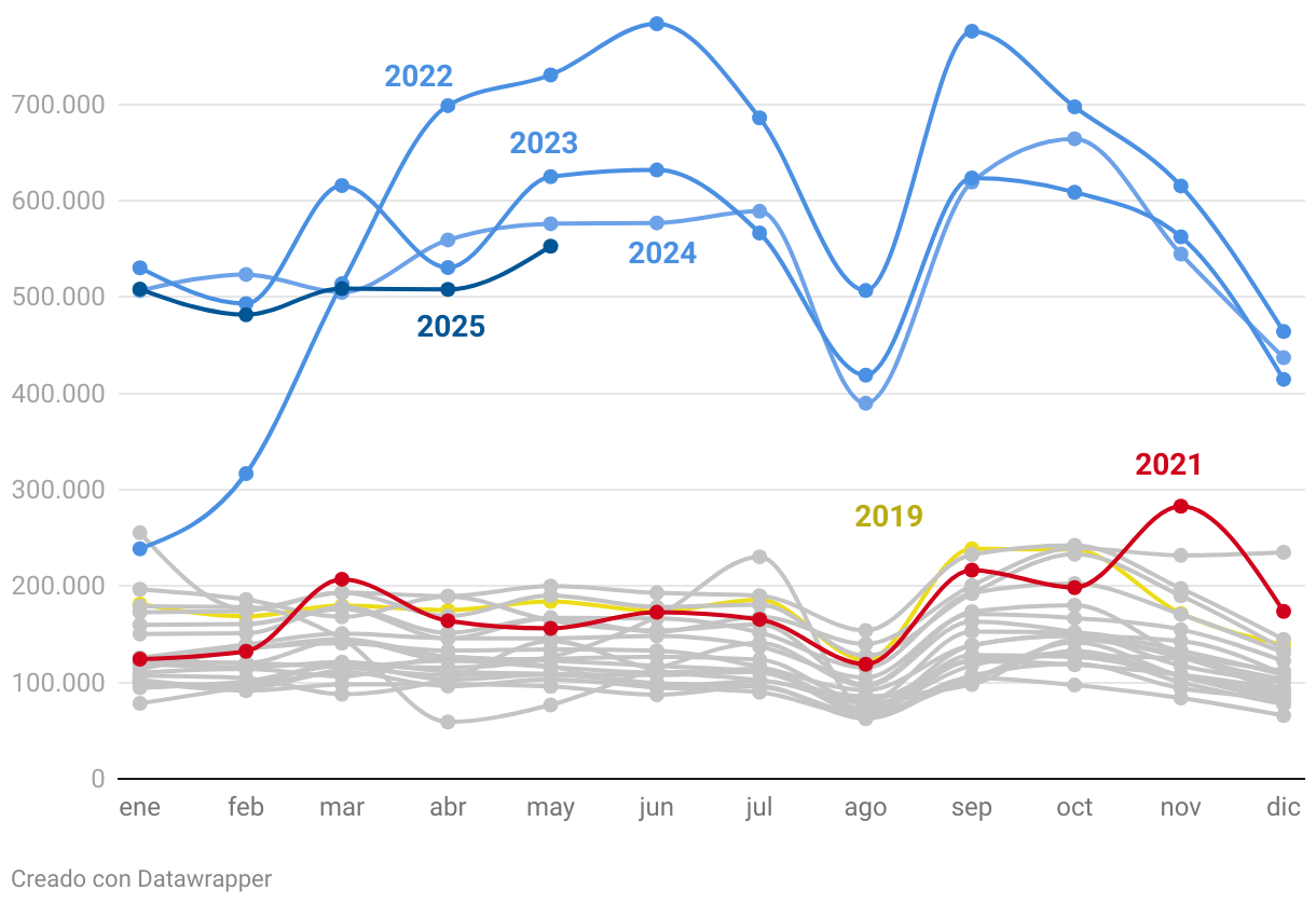 Los indefinidos de 2022 a 2025, comparado con años anteriores
