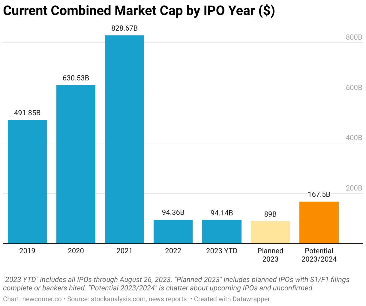Current Combined Market Cap by IPO Year ($)
