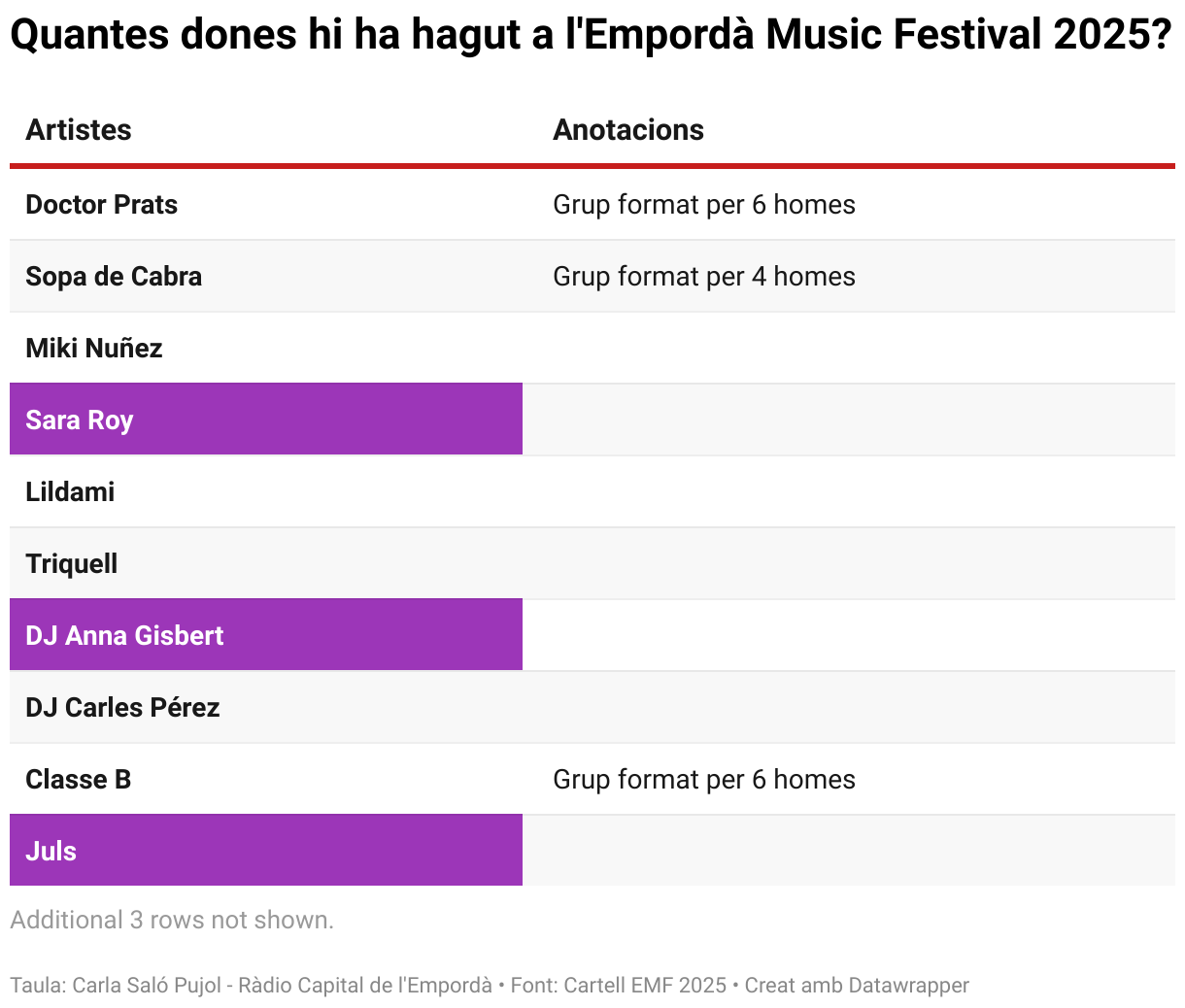 Quantes dones hi ha hagut a l'Empordà Music Festival 2025?