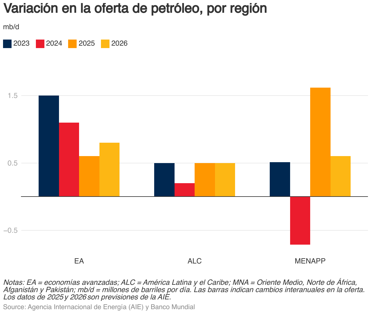 Variación en la oferta de petróleo, por región