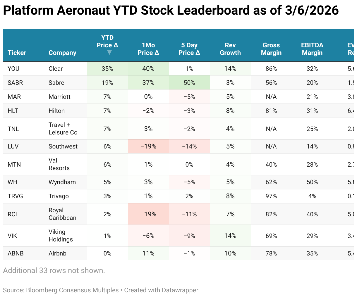Platform Aeronaut YTD Stock Leaderboard as of 3/6/2026