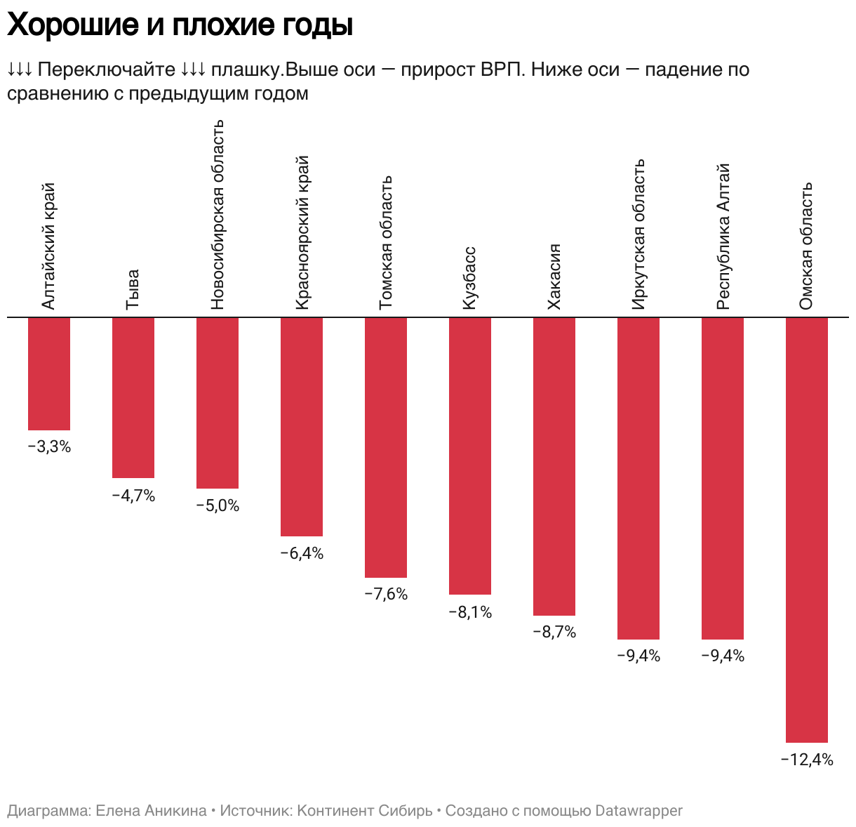 ↓↓↓ Переключайте ↓↓↓ плашку.Выше оси — прирост ВРП. Ниже оси — падение по сравнению с предыдущим годом