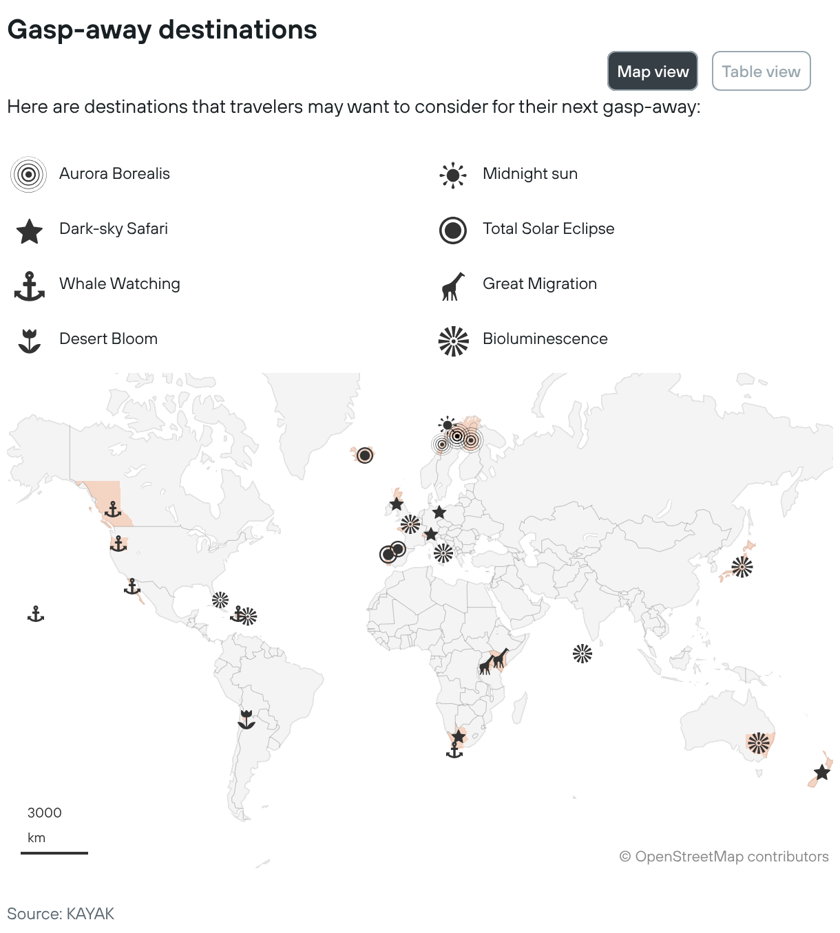 Here are destinations that travelers may want to consider for their next gasp-away: Map view Table view