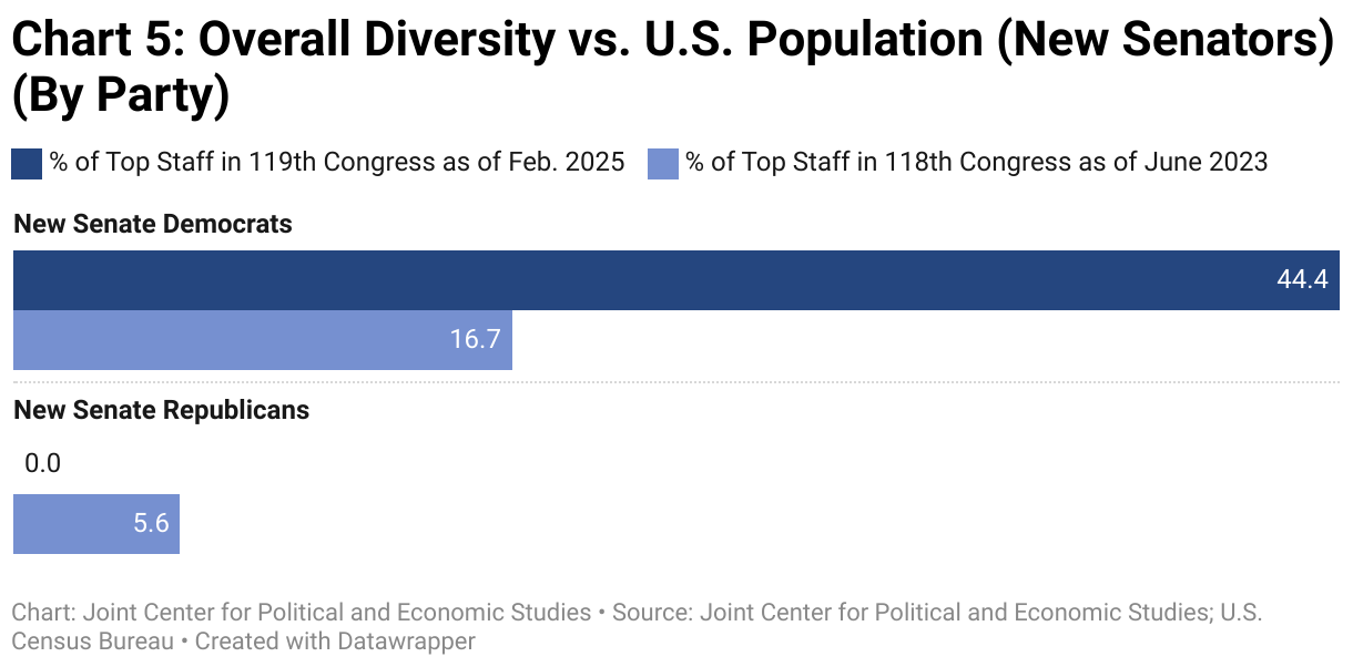 Chart 5: Overall Diversity vs. U.S. Population (New Senators) (By Party)