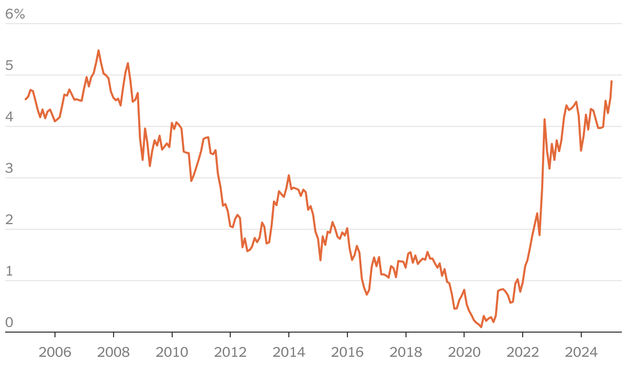 Yield on 10-year British government bonds