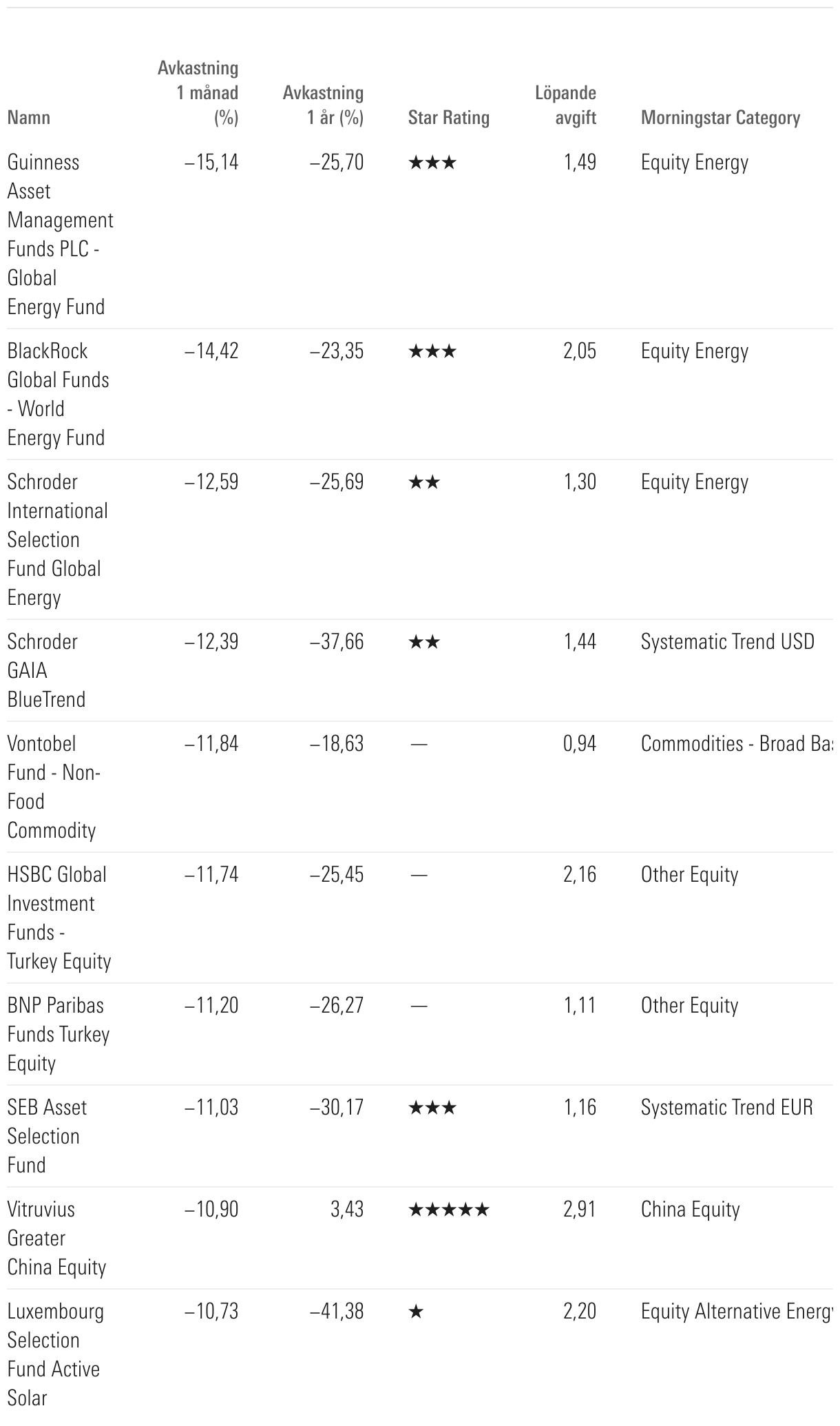Sämsta fonderna i april