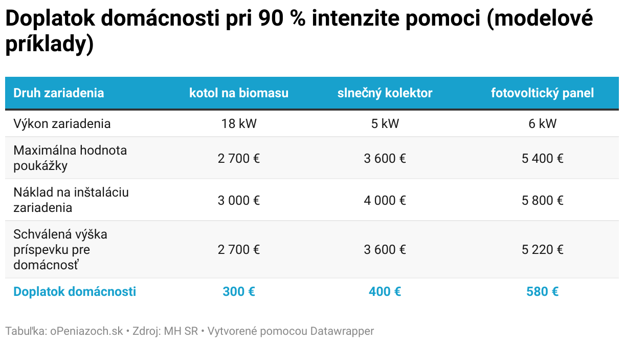 Doplatok domácnosti pri 90 % intenzite pomoci (modelové príklady)