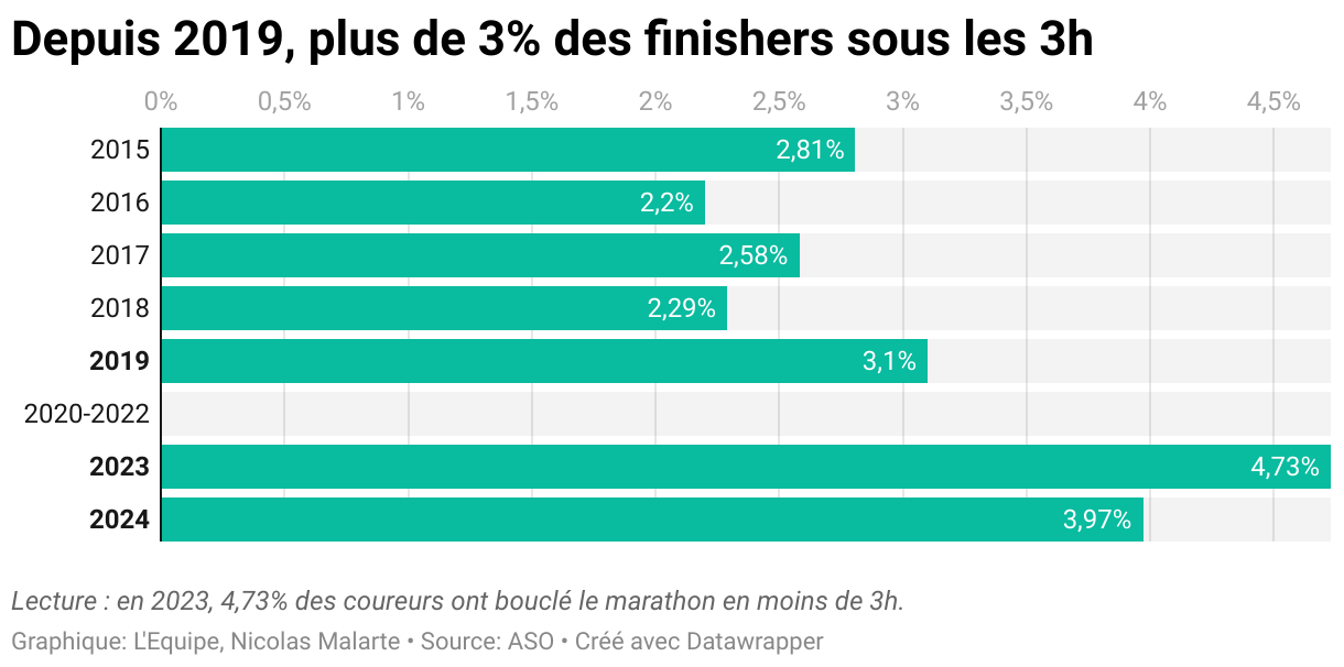 Depuis 2019, plus de 3% des finishers sous les 3h