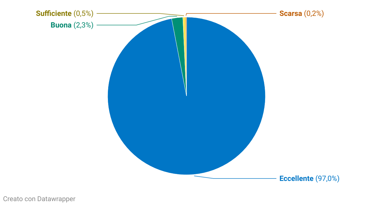 Acque di balneazione - Classificazione stagione balneare 2024 (% km)