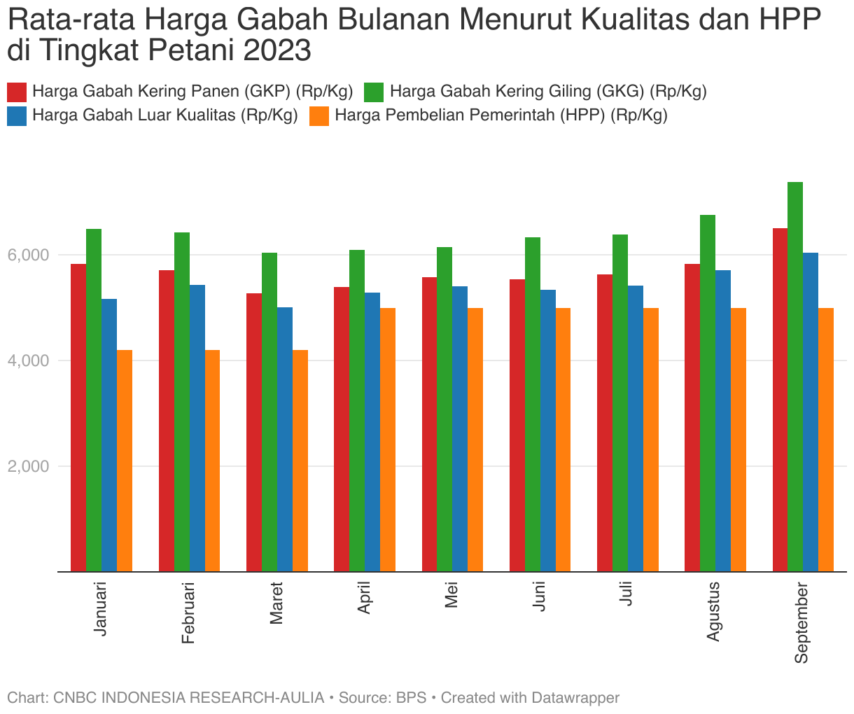 Rata-rata Harga Gabah Bulanan Menurut Kualitas dan HPP di Tingkat Petani 2023