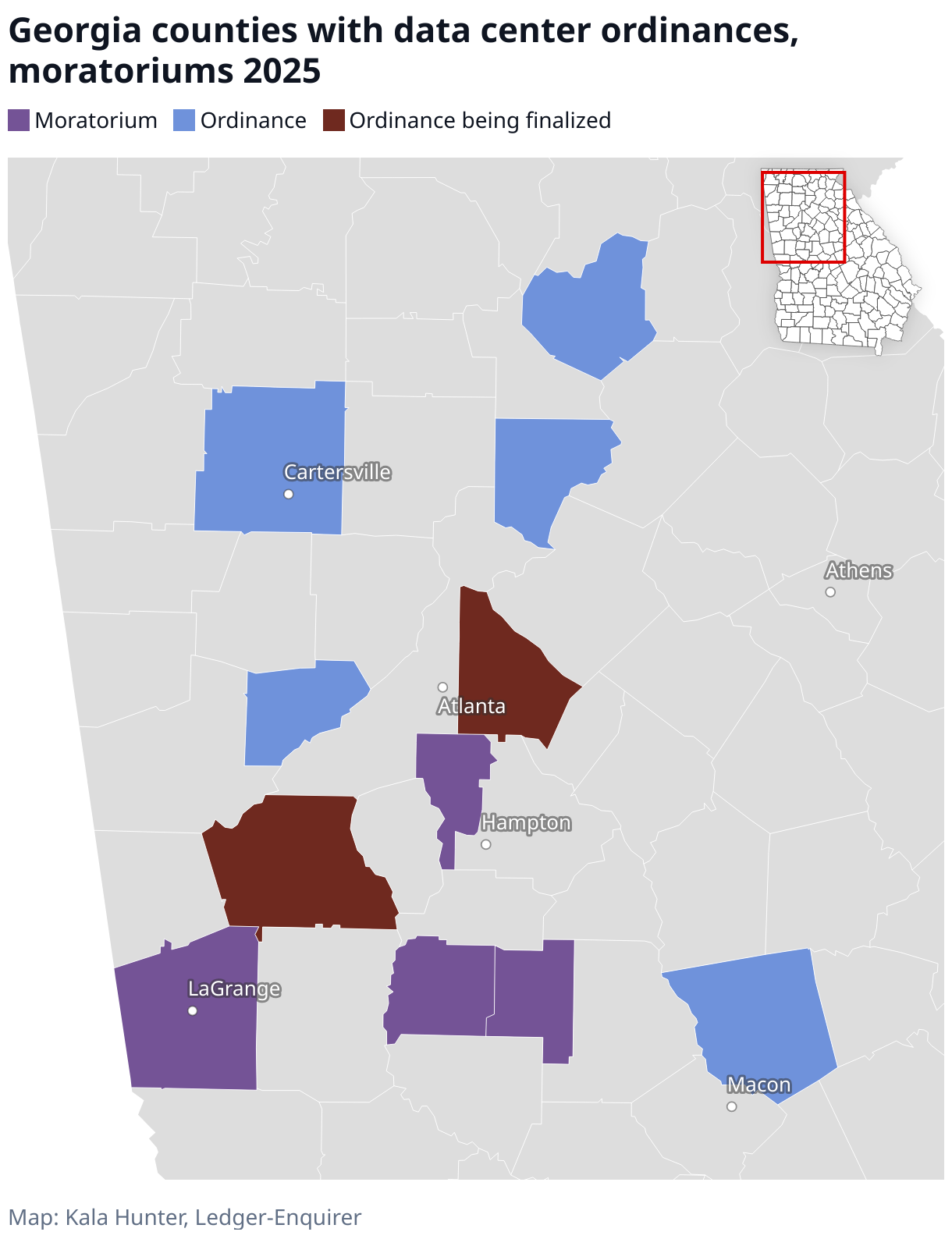 Georgia counties with data center ordinances, moratoriums 2025