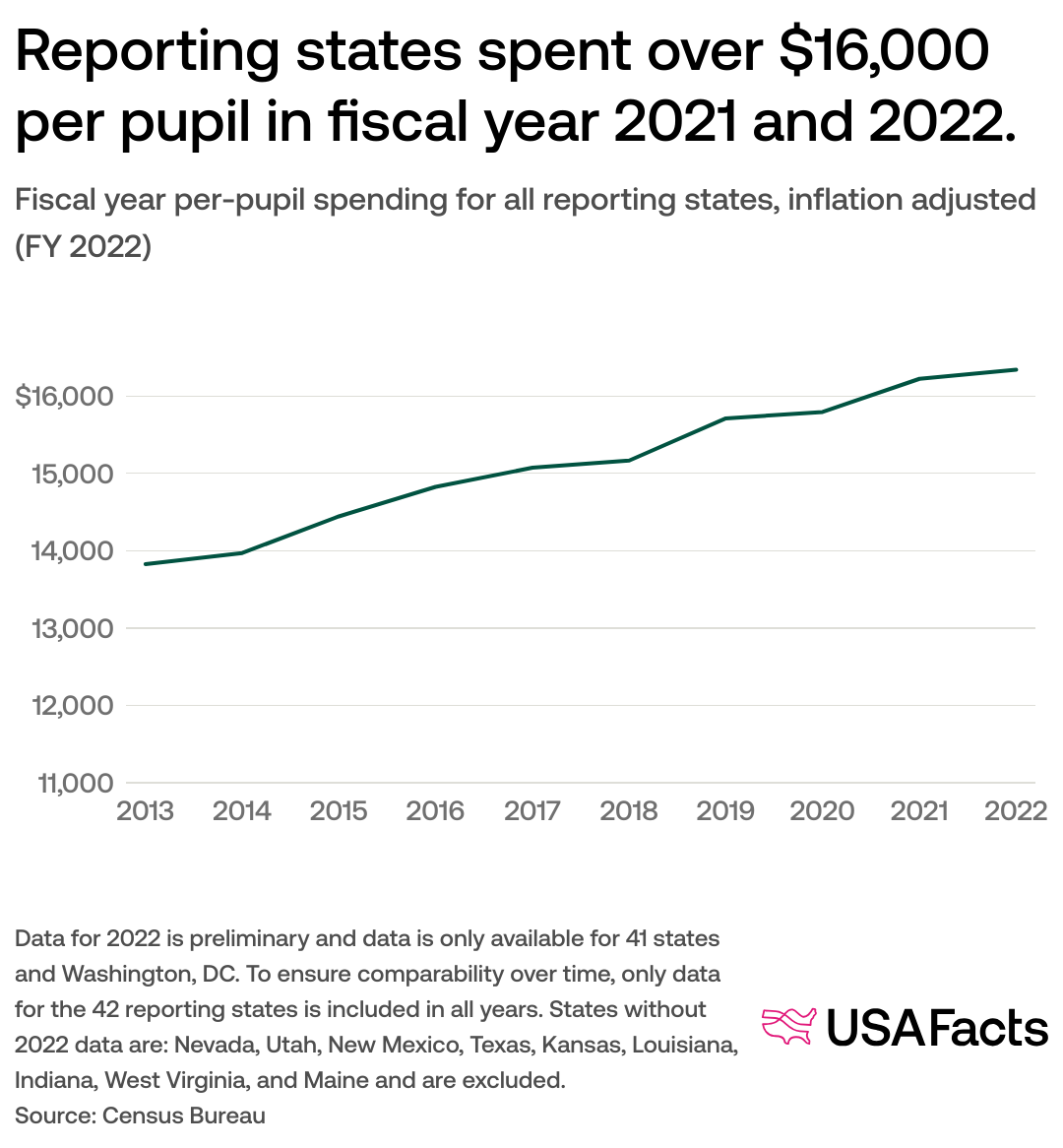 Fiscal year per-pupil spending for all reporting states, inflation adjusted (FY 2022)