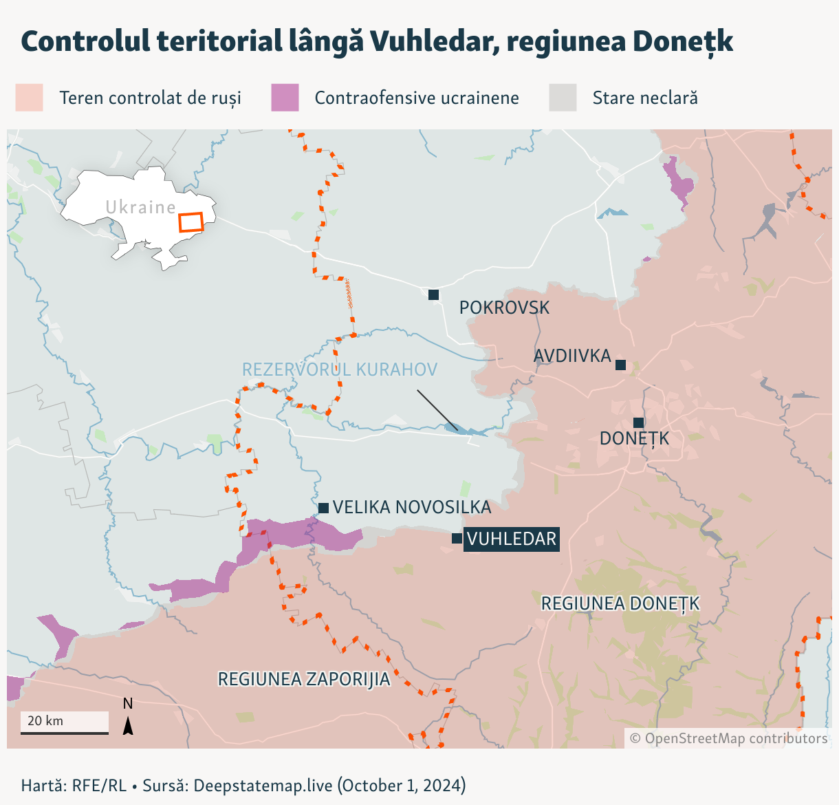 Controlul teritorial lângă Vuhledar, regiunea Donețk