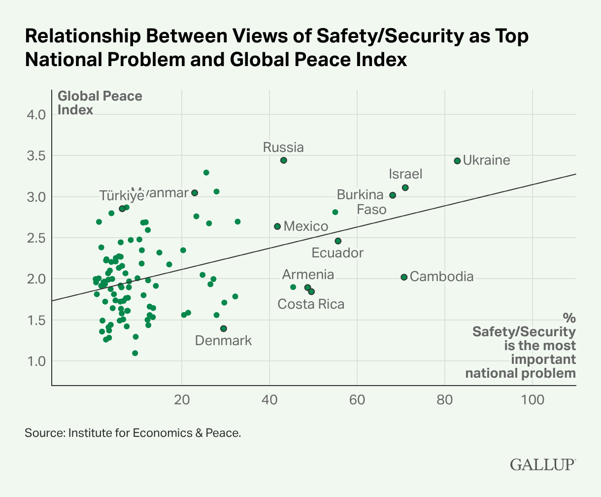 Relationship Between Views of Safety/Security as Top National Problem and Global Peace Index
