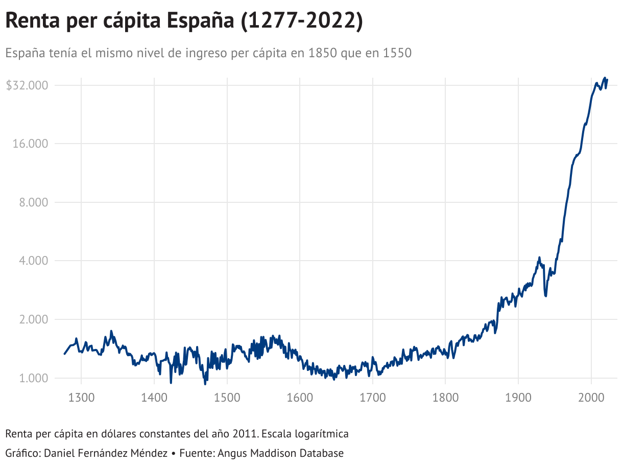 España tenía el mismo nivel de ingreso per cápita en 1850 que en 1550