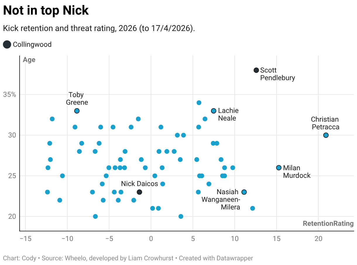 Kick retention and threat rating, 2026 (to 17/4/2026).