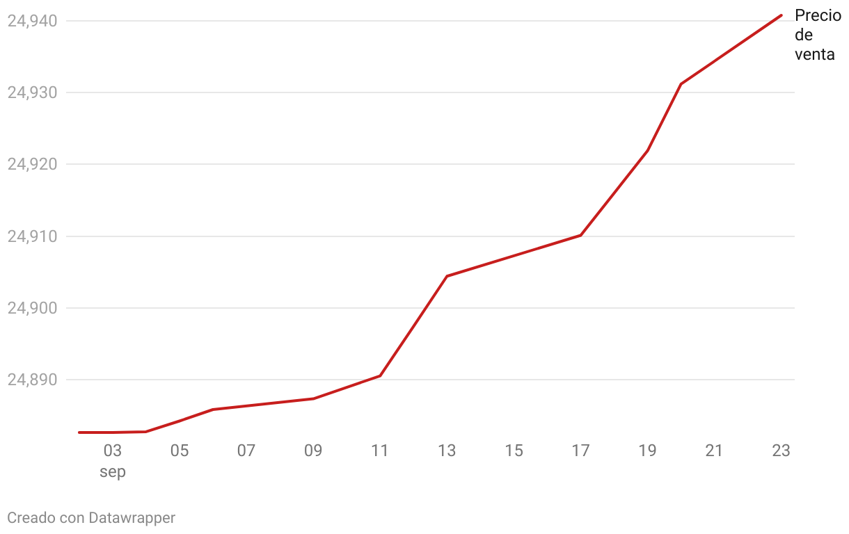 Un dólar costaba L24.8826 el 2 de septiembre anterior. El lunes 23 de septiembre, el precio ascendió a L24.9408. Subió 0.06 centavos de lempira.