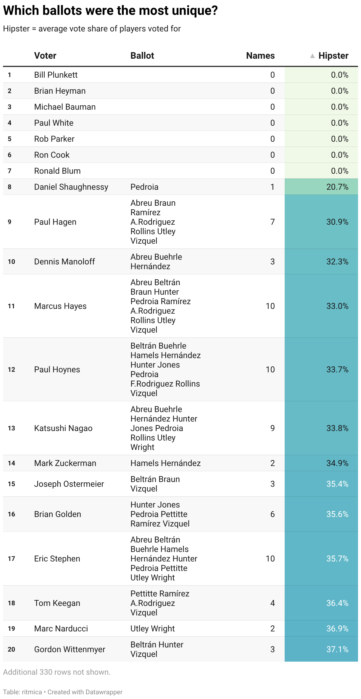 Hipster = average vote share of players voted for