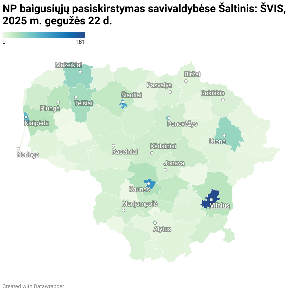 NP baigusiųjų pasiskirstymas savivaldybėse Šaltinis: ŠVIS, 2025 m. gegužės 22 d.