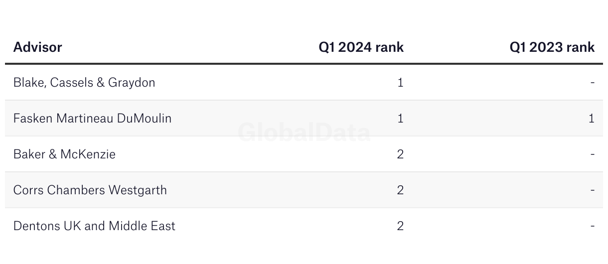 Ranking of legal advisors for renewable energy-related deals in the mining industry, 9M 2024