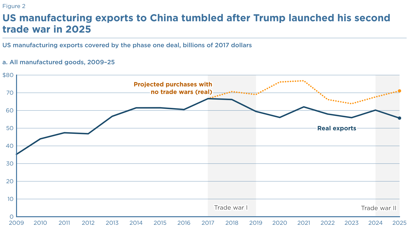 US manufacturing exports covered by the phase one deal, billions of 2017 dollars a. All manufactured goods, 2009–25