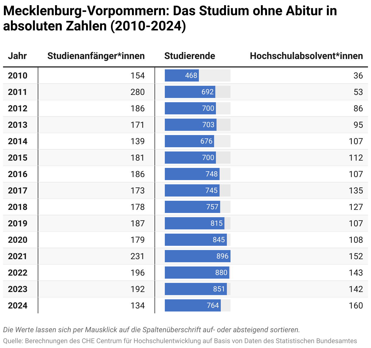 Mecklenburg-Vorpommern: Das Studium ohne Abitur in absoluten Zahlen (2010-2024)