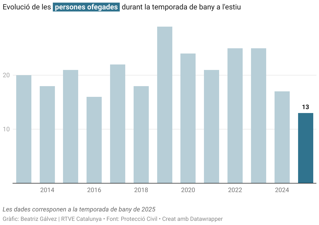 Evolució de les persones ofegades durant la temporada de bany a l'estiu