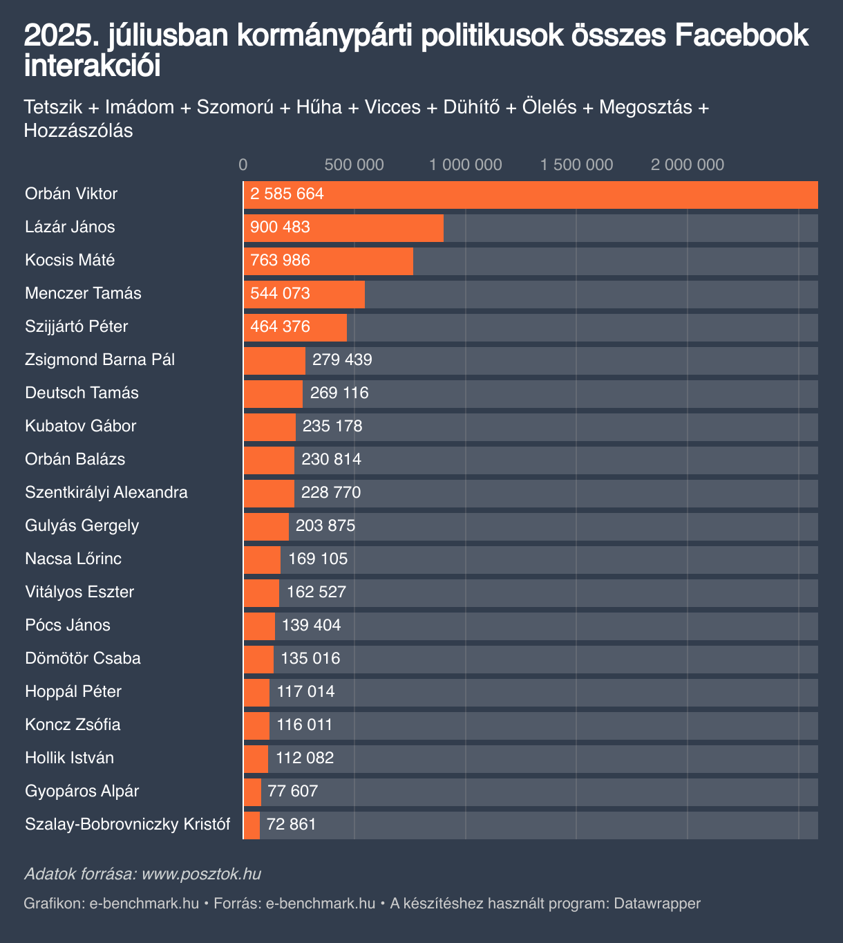2025. júliusban kormánypárti politikusok összes Facebook interakciói