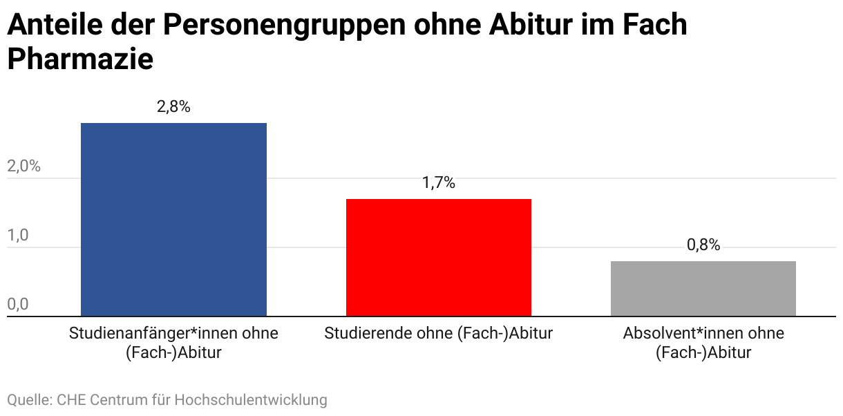 Anteile der Personengruppen ohne Abitur im Fach Pharmazie
