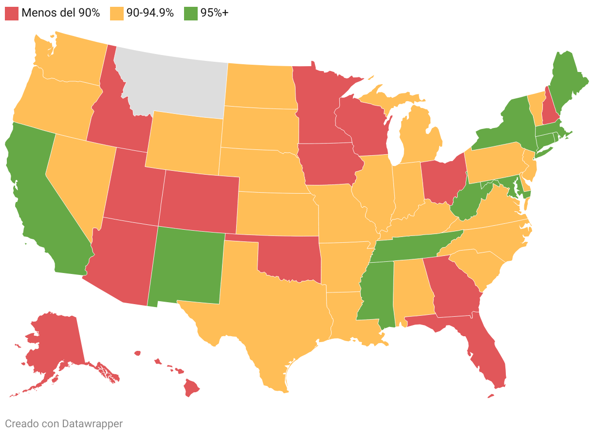La cobertura de la vacuna MMR en niños que están en el jardín de infantes de EEUU ha disminuido del 95.2% durante el año escolar 2019-2020 al 92.7% en el año escolar 2023-2024.