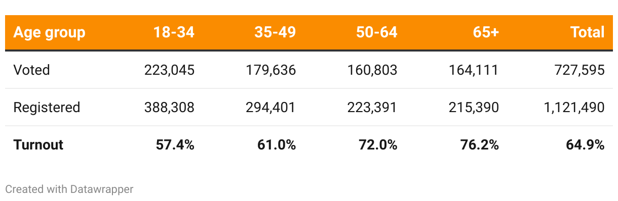In the November 2024 elections, voter turnout rates in Philadelphia increased as the voters got older. This tends to be true statewide and nationally, federal election data show.