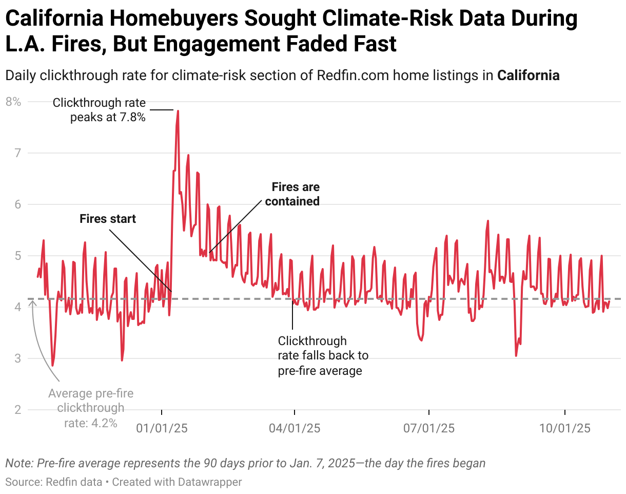 Daily clickthrough rate for climate-risk section of Redfin.com home listings in California