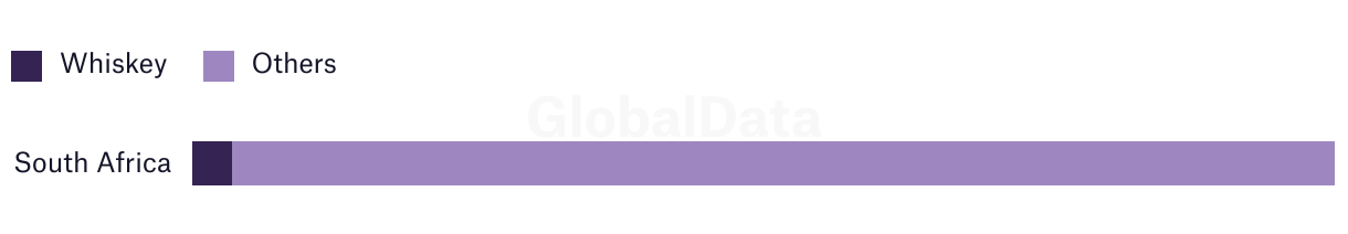 Market share of whiskey vs other spirits in the top African markets (million litres) - 2022