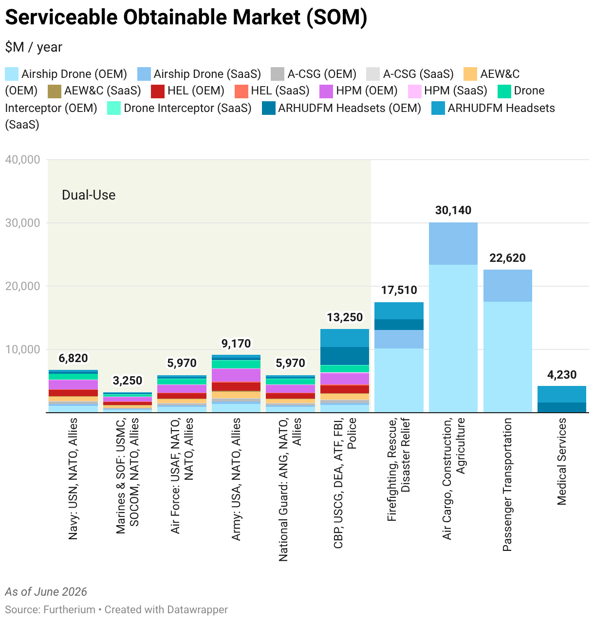 In these technologies, military applications drive innovation. However, the civilian sectors account for the lion's share of the market.