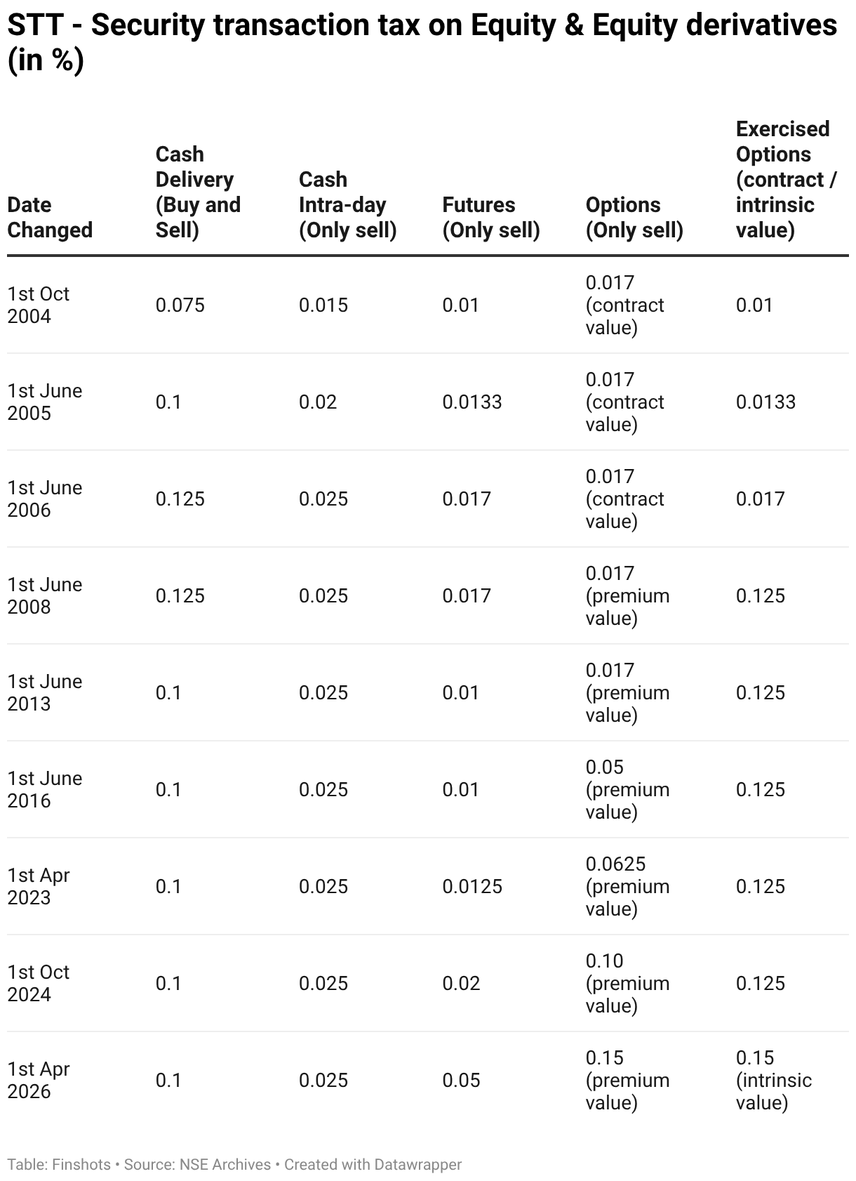 STT - Security transaction tax on Equity & Equity derivatives (in %)
