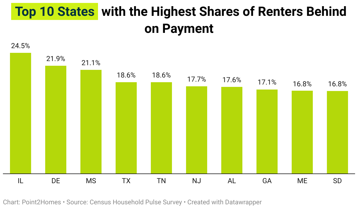 with the Highest Shares of Renters Behind on Payment