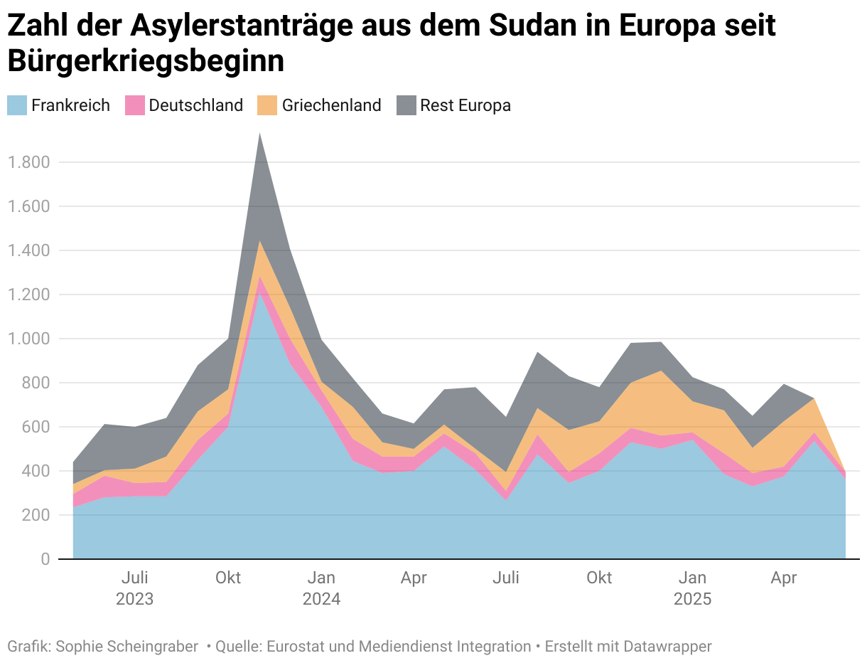 Zahl der Asylerstanträge aus dem Sudan in Europa seit Bürgerkriegsbeginn