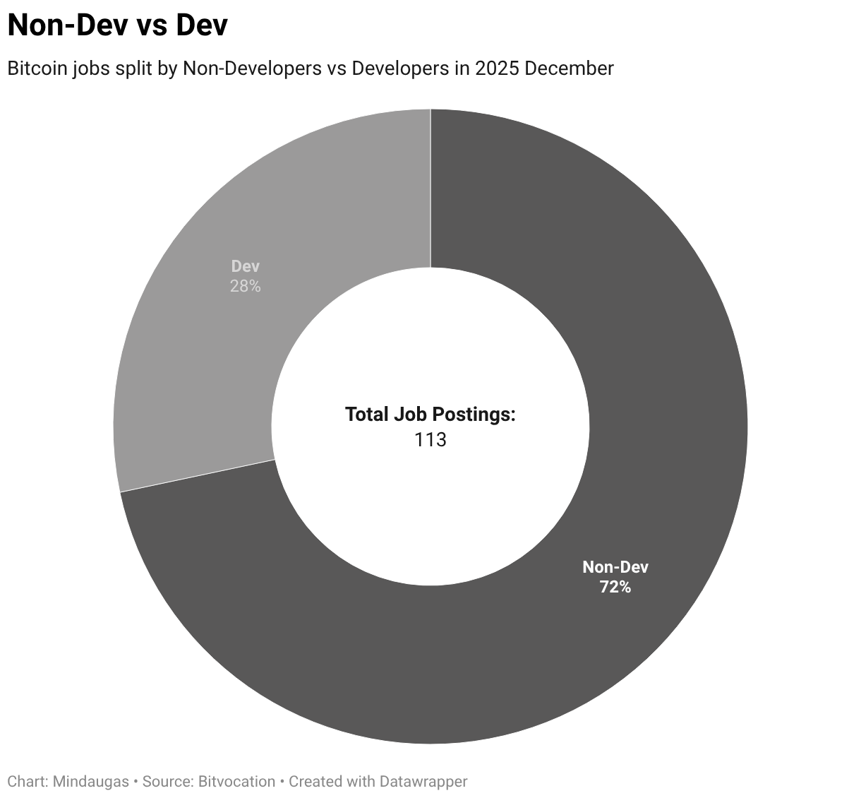 Bitcoin jobs split by Non-Developers vs Developers in 2025 December