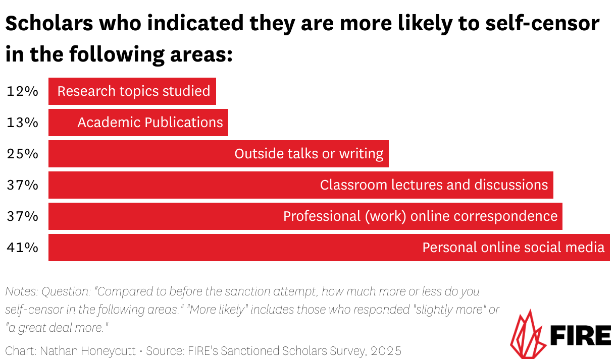 Scholars who indicated they are more likely to self-censor in the following areas: