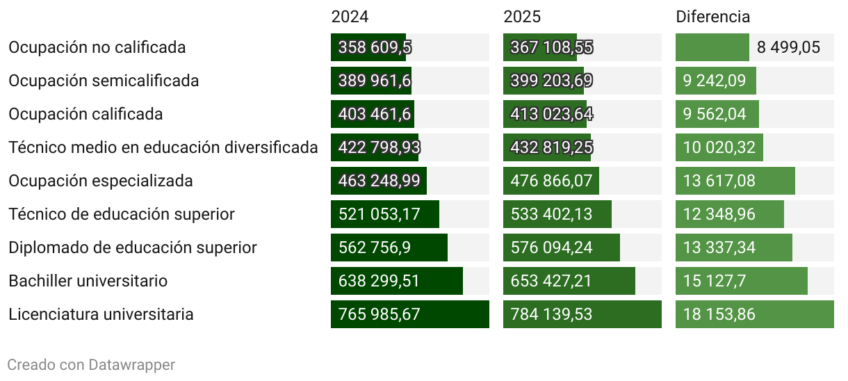 En colones. Diferencia entre 2024 y 2025.