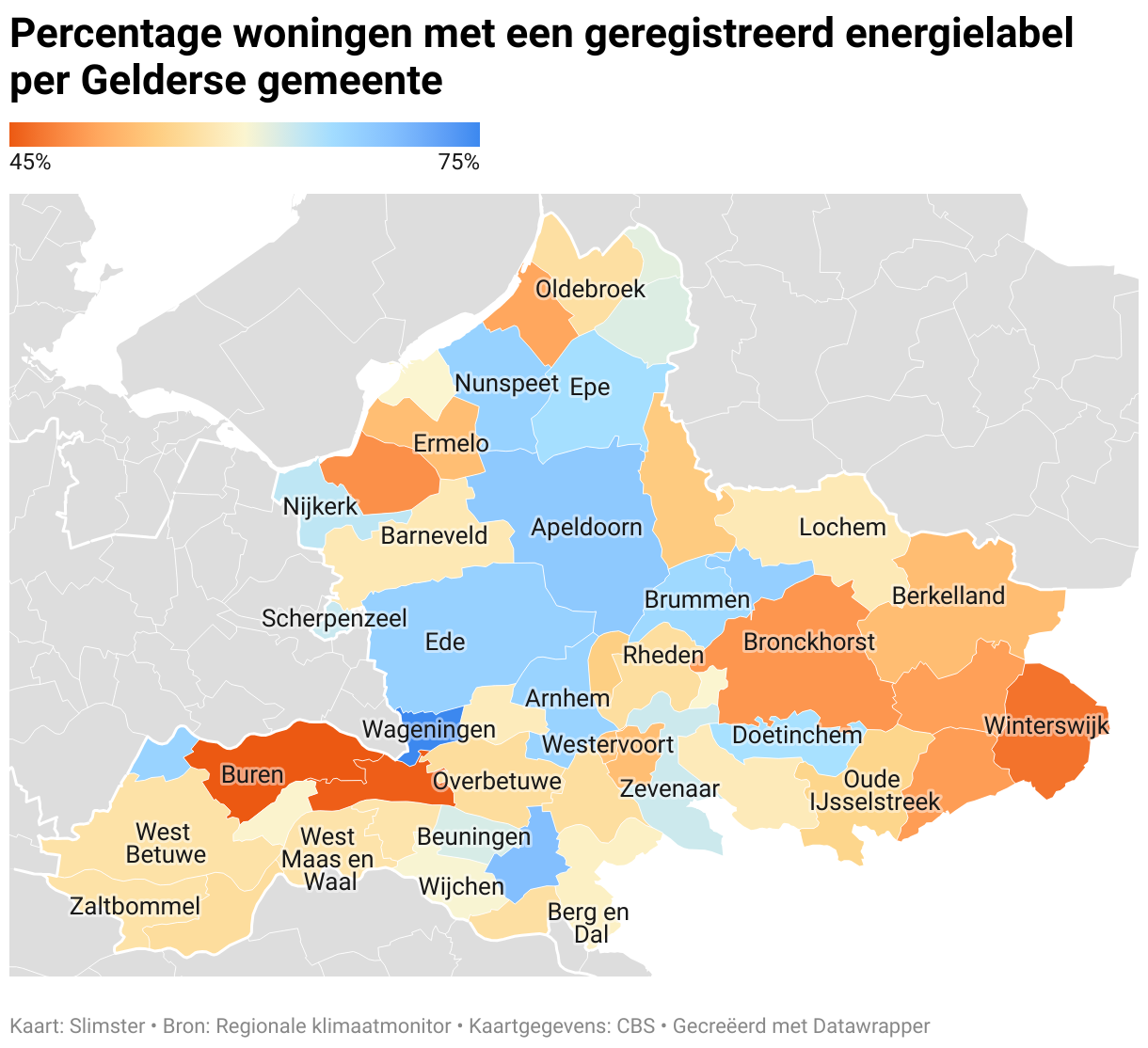 Percentage woningen met een geregistreerd energielabel per Gelderse gemeente