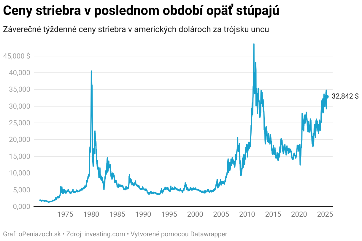 Záverečné týždenné ceny striebra v amerických dolároch za trójsku uncu