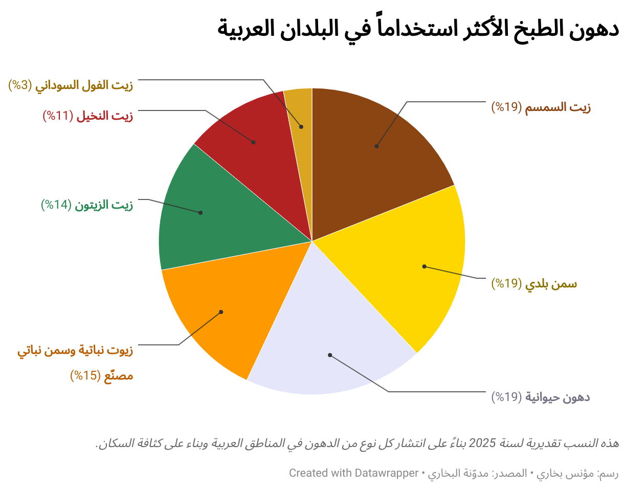 دهون الطبخ الأكثر استخداماً في البلدان العربية