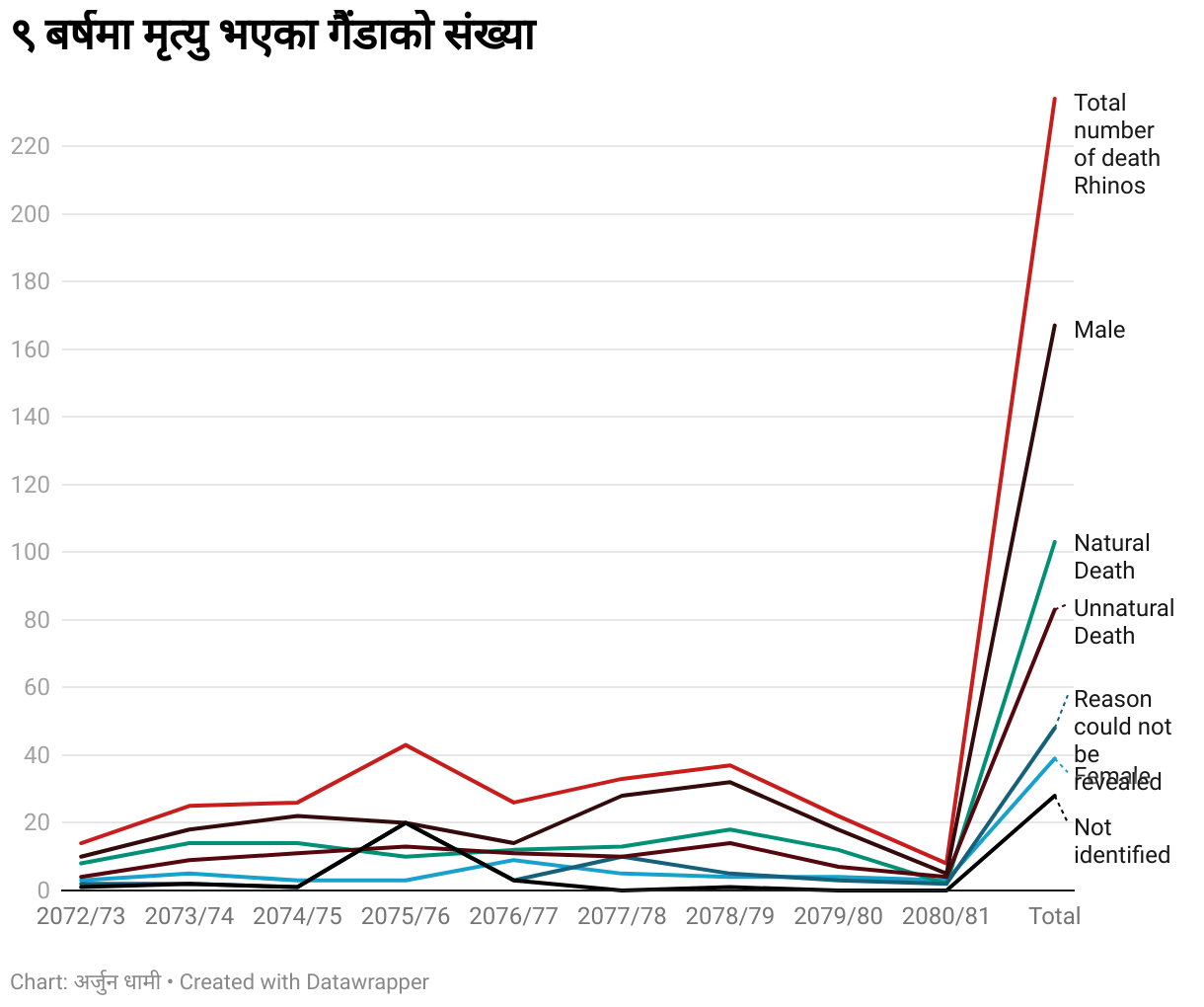 ९ बर्षमा मृत्यु भएका गैंडाकाे संख्या