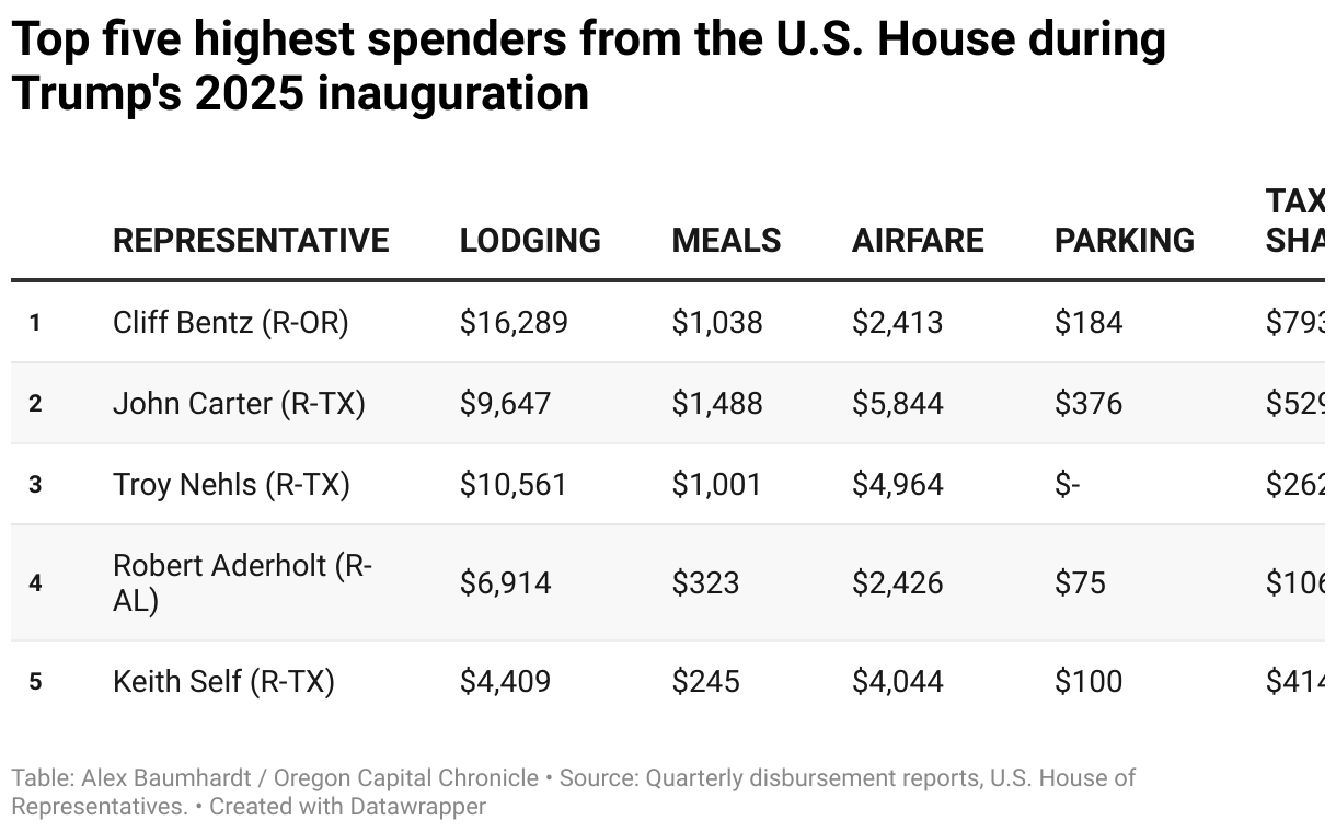 Top five highest spenders from the U.S. House during Trump's 2025 inauguration