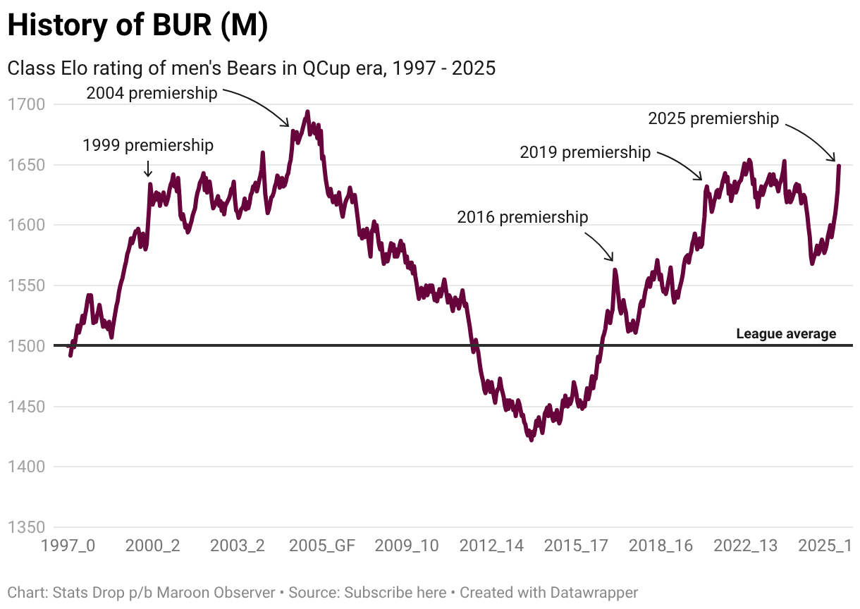 Class Elo rating of men's Bears in QCup era, 1997 - 2025