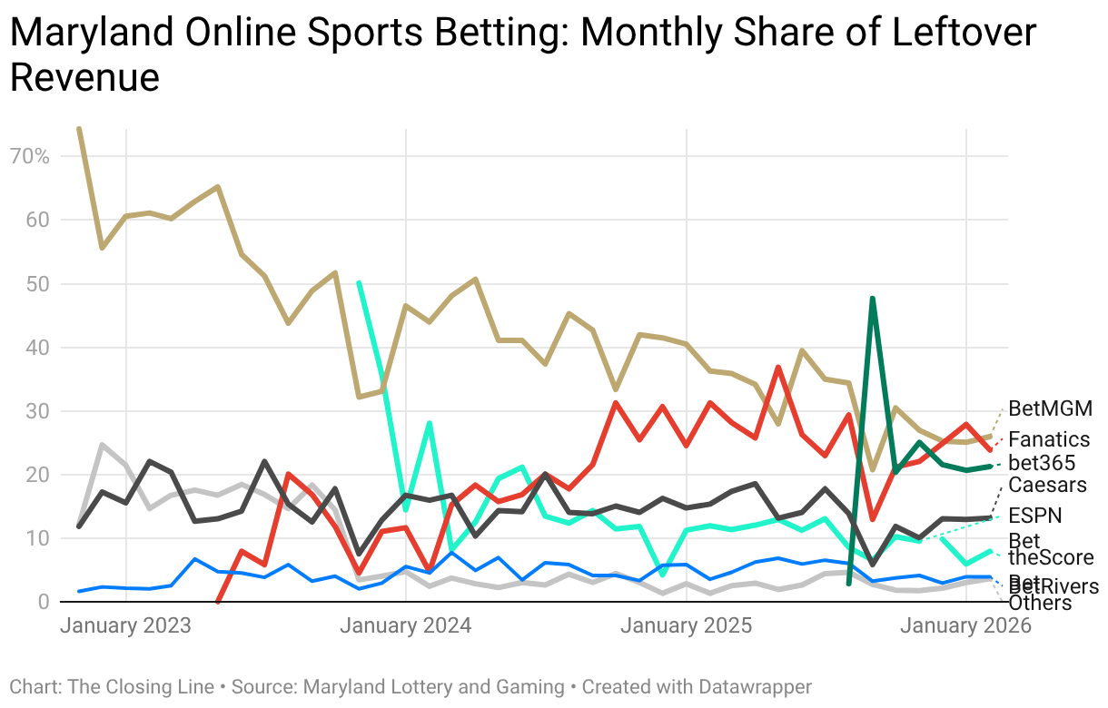 Maryland Online Sports Betting: Monthly Share of Leftover Revenue